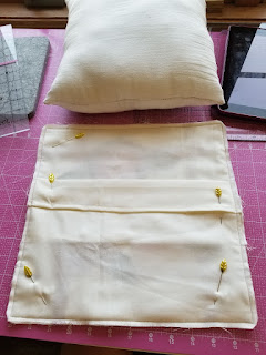 Multiple layers and 3 flowers later, I found a piece of white-ish upholstery fabric in my stash.